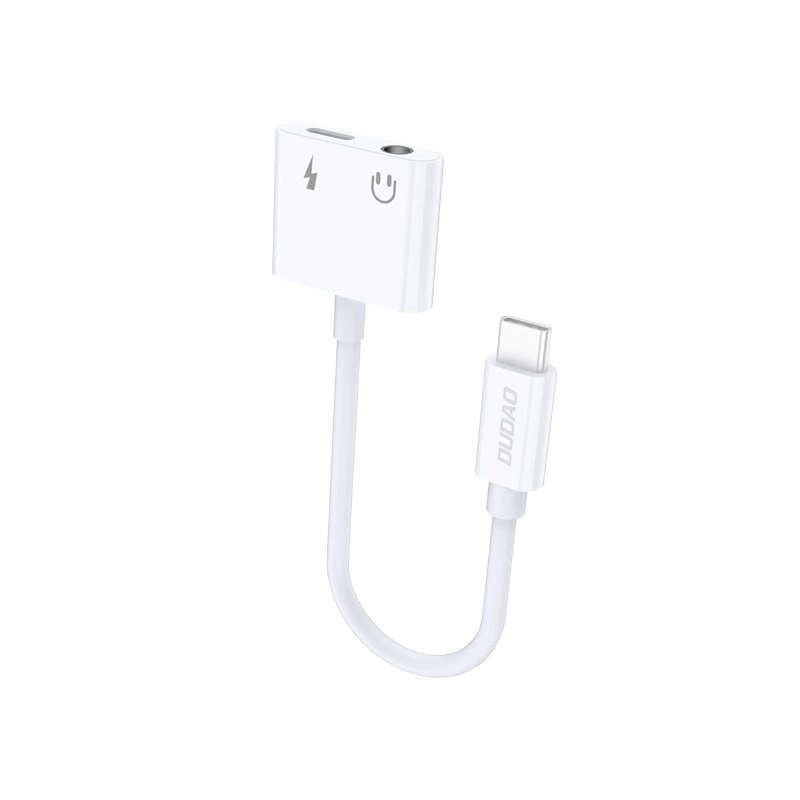 Dudao adapter przejściówka rozdzielacz słuchawkowy USB Typ C – USB Typ C / 3,5 mm mini jack biały (L13T white)