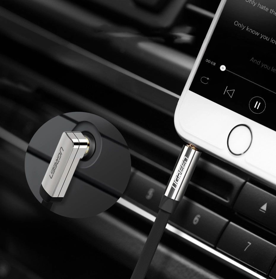 Ugreen płaski kątowy kabel przewód audio AUX 3,5 mm mini jack 0,5 m czarny (AV119 10596)
