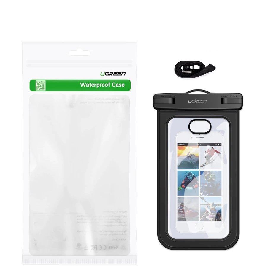 Ugreen uniwersalny wodoodporny pokrowiec etui na telefon (max 6,0”) na basen nad wodę IPX8 czarny (50919 LP186)